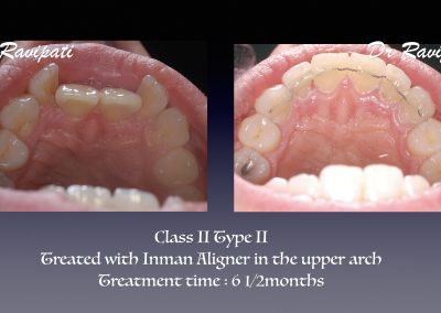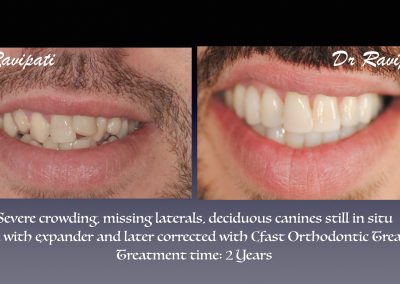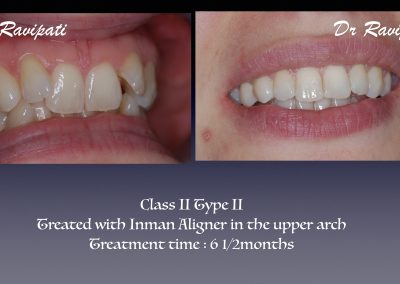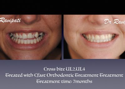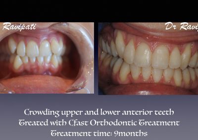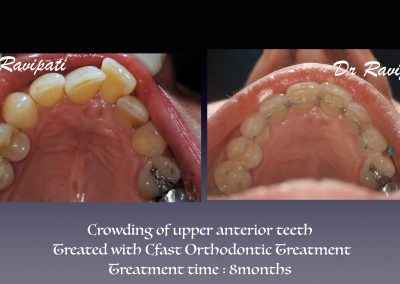 Clear labial is a cosmetic orthodontic procedure and is a minimally invasive treatment that straightens misaligned upper and lower front six teeth using clear orthodontic brackets and tooth coloured Nickel-Titanium wires. The tooth movement is much more predictable and twice quicker than clear aligners however, does not replace conventional orthodontic treatment.